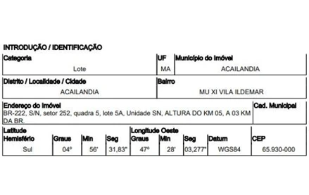 ROD BR 222,N. SN KM 07, VILA ILDEMAR - CEP: 65930-000, ACAILANDIA - MARANHAO