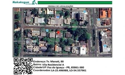 Nº. Produto: 1 Item 14, Quadra 12, Lote 193, MANATI, TRAVESSA, nº 88, Terreno (m2) 594,40 Casa (m2) 119,41 Matricula 41558, Vila A1 Valor Avaliação R$-630.000,00
