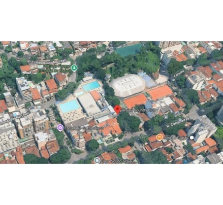 do P.A.L 36611, onde figura um Estádio sob o n° 262, sem aceitação das obras, à rua Professor Valadares, dist do Andaraí, medindo 32,00m de frente em 2 linhas de 17,00m + 15,00m (aprofundando o terreno); no lado oposto mede 27,00m em curva interna subordinada a um raio de 59,00m pela rua Projetada B + 62,00m em reta pela rua projetada B, + 16,10m em curva externa subordinada a um raio de 20,00m, pela rua Projetada B; 81,00m à direita confrontando com área desapropriada pelo Estado; à esquerda 89,00m (alargando o terreno para a esquerda, partindo do alinhamento da rua Professor Valadares, e alcançando o alinhamento da rua Caruarú), confrontando nesse trecho com os imóveis 258 da rua Professor Valadares, 585, 597, 605, 627 e 633 da rua Canavieiras e n° 541 da rua Caruarú, + 37,50m em curva externa subordinada a um raio de 32,00m, também pelo alinhamento da rua Caruarú, + 30,00m partindo do alinhamento da rua Caruarú, onde confronta com o n° 615 desta rua, + 34,60m configurando com o anterior um ângulo obtuso externo + 13,00m estreitando o terreno, confrontando nesses 2 últimos segmentos com o n° 47 da rua Olegarinha. Matrícula n° 28.433 do RI 10° Ofício de Registro de Imóveis do Rio de Janeiro/RJ. Trata-se de um imóvel comercial utilizado como clube social e esportivo, com as seguintes instalações: duas quadras de tênis, duas quadras de futsal, uma quadra de areia, um campo de futebol society, três piscinas (sendo duas de grande porte e uma infantil), restaurante, bar, academia, teatro, três salões de dança e três salões de festas (dois com capacidade para 250 pessoas e um com capacidade para 150 pessoas), totalizando aproximadamente 7.981,00m' de área edificada, em um terreno com área total estimada em 15.500,00m2. O bem está situado próximo ao Parque Estadual do Grajaú, a menos de 1 km da Subestação de Energia de Grajaú da Paróquia Nossa Senhora do Perpétuo Socorro - Vicariato Norte e Praça Edmundo Rego do Hospital Casa Italiano da Creche Escola Recanto Infantil da Escola Municipal Professor Lourenço Filho