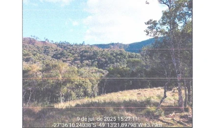 Um terreno rural, de formato irregular com a área de 425.246,00, equivalente a 42,5246ha e perímetro de 3.380,92metros, designado por Gleba B”, denominado Sítio Scheidt”, situado na localidade Rio de Dentro, Município de Angelina, comarca de Santo Amaro da Imperatriz/SC, confrontantes: Norte, confronta com a propriedade de Carlos Scheidt e outro (Matrícula n.º 35.437 - Gleba A); Nordeste, confronta com a propriedade de Jonata Hugen 9Matrícula n.] 32.563); Noroeste, novamente Nordeste e Sudeste, confronta com a propriedade de Valdeci Hugen (Matrícula n.º 18.096); Sul e Oeste, confronta pela crista do perau com a propriedade de Pedro Lucindo Schmiz (Matrícula n.º 19.534); coordenadas, medidas e azimutes - inicia-se a descrição deste perímetro no vérticePCTV-M-0023, de coordenadas (Longitude: -49º13’42,973”, Latitude: -27º35’92,245” e Altitude: 1.016,16m); ponto mais ao norte do imóvel: deste, segue no sentido horário por linha ideal confrontando com terras de Jonata Hugen (matrícula n.º 32.563), com os seguintes azimutes e distâncias: 154º26’ e 430,75m até o vértice PCTV-P-0004, (longitude: -49º13’36,196”, Latitude: -27º36’11,867” e Altitude: 875,40m); situado no eixo do ribeirão denominado Rio Novo (braço norte), deste, segue por linha ideal confrontando com terras de Valdeci Hugen (matricula n.º 18.096), com os seguintes azimutes e distâncias: 154º26’ e 120,50m até o vértice PCTV -M-0024, (Longitude: -49º13’34,301”, Latitude: -27º36’15,398” e Altitude: 904,20m); 64º18’ e 396,65m até o vértice PCTV-M-0025, (longitude: -49º13’21,267”, Latitude: -27º36’09,913” e Altitude: 906,09m); 159º42’ e 332,96, até o vértice PCTV-M-0026, (Longitude: -49º13’17,058”, Latitude: -27º36’19,958” e Altitude: 936,20m); 235º09’ e 111,84m até o vértice PCTV-M-0027, (Longitude: -49º13’20,405”, Latitude: -27º36’22,034” e Altitude: 953,02m); 207º17’ e 331,78m até o vértice A2X-P-0228, (Longitude: -49º13’25,951” e Altitude: 1.035,97m); situado na crista do perau; deste, segue pela crista do perau confrontando com o imóvel de Pedro Lucindo Schmitz e outros (matrícula n.º 19.534), com os seguintes azimutes e distâncias: 326º30’ e 88,16m até o vértice A2X-P-0229, (Longitude: -49º13’27,725”, Latitude: -27º36’29,223” e Altitude: 1.027,82m); 294º13’ e 6637m até o vértice A2X-M-0107, (Longitude: -49º13’29,932”, Latitude: -27º36’28,338” e Altitude: 1.024,29m); 228º00’ e 120,92m até o vértice A2X-P-0230, (Longitude): -49º13’34,125”, Latitude: -27º36’27,124” e Altitude: 998,13m); 200º26’ e 155,61m até o vértice A2X-P-0231, (Longitude: -49º13’36,107”, Latitude: -27º36’31,860º e Altitude: 1.012,00m); 307º52” e 363,81m até o vértice A2X-M-0109, (Longitude: -49º13’46,578”, Latitude: -27º36’24,605” e Altitude: 1.028,69m); 2º42’ e 647,21m até o vértice A2X-M-0112, (Longitude: -49º13’45,460”, Latitude: -27º36’03,606” e Altitude: 1,039,72m); 351º57’ e 127,92m até o vértice A2X-P-0232, (Longitude: -49º13’46,112”, Latitude: -27º35’59,492” e Altitude: 1,027,61m); deste; segue por linha ideal confrontando com a Carlos Scheidt e outro (Matrícula n.º 35.437 - Gleba A), com os seguintes azimutes e distâncias: 84º57’ e 86,43m até o vértice PCTV-M-0023, ponto inicial da descrição deste perímetro, conforme matricula 35.438 do RI de Santo Amaro da Imperatriz/SC. Status do imóvel - ocupado