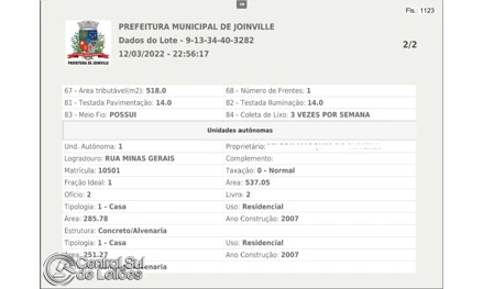 Processo PJe nº 0000224-94.2018.5.12.0050 Exequente(s): Luciane Santos da Cruz Executado(s): Kavi Cozinha Industrial Ltda. - ME e outros (4) Bem(ns): 01 (um) Lote 10, do desmembramento Morro do Meio II, com área total de 518,00m², situado na rua Minas Gerais, no Município de Joinville/SC, com as seguintes medidas e confrontações: fazendo frente na rua Minas Gerais, medindo 14,00m; lado direito, de quem da rua olha, medindo 37,00m, confrontando-se com o lote 09; lado esquerdo, de quem da rua olha, medindo 37,00m, confrontando-se com o lote 11; fazendo o travessão dos fundos, medindo 14,00m, confrontando-se com terras de Rolf Walter Goll; matriculado sob o nº 48.627 do 2° O.R.I. de Joinville/SC. Obs.: Inscrição Imobiliária sob o n° 09.13.34.40.3282.0001. Obs.: Consta que o endereço atualizado do imóvel é Rua Minas Gerais, 4896, Morro do Meio, Joinville/SC, conforme informações junto ao cadastro técnico da Prefeitura Municipal de Joinville. Sobre o terreno há uma edificação não averbada, conforme observado da rua com a qual o imóvel faz frente. Segundo dados da Prefeitura Municipal de Joinville, colhidos junto ao espelho cadastral do imóvel, a edificação totaliza 537,05m² em estrutura concreto/alvenaria. Ônus: penhorado nos autos n° 0001217-74.2017.5.12.0050 que tramita na 5ª Vara do Trabalho de Joinville/SC, nos autos n° 0000476-34.2020.5.12.0016 que tramita na 2ª Vara do Trabalho de Joinville/SC; indisponibilidade nos autos n° 0004553-84.2010.8.24.0038, que 2º Juízo da Unidade Estadual de Direito Bancário da Capital/SC, nos autos nº 0000708-52.2015.5.22.0110 que tramita na Vara do Trabalho de Uruçuí/PI; nos autos n° 0001462-90.2017.5.12.0016, 0321000-14.1999.5.12.0016, nº 001508-16.2016.5.12.0016, nº 0000476-34.2020.5.12.0016, que tramitam na 2ª Vara do Trabalho de Joinville/SC; nos autos n° 0000290-52.2017.5.12.0004 que tramita na 1ª Vara do Trabalho de Joinville/SC; nos autos n° 0000670-34.2017.5.12.0050, 0000988-38.2021.5.12.0030 que tramitam na 5ª Vara do Trabalho de Joinville/SC. Avaliado em R$ 1.230.000,00 (um milhão duzentos e trinta mil reais)